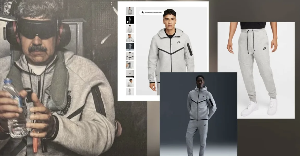 That photo has since gone viral, not only for Maduro's subdued appearance but also for his outfit: a gray Nike Tech sweatsuit. Nike Tech fleeces, jackets, pants and sweatsuits have drawn cultural commentary in recent months, with a social media trend inspiring young men to ditch the outerwear style in exchange for quarter-zips and the perceived sophistication that comes along with the article of clothing.