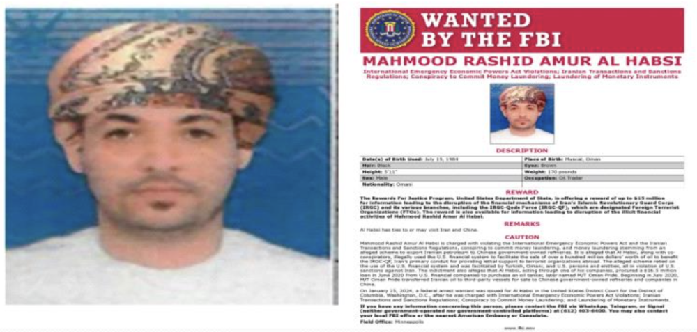 بالأسم والصورة.. امريكا تلاحق عماني متهم بغسيل الأموال وتهريب النفط الإيراني إلى الصين والحوثيين