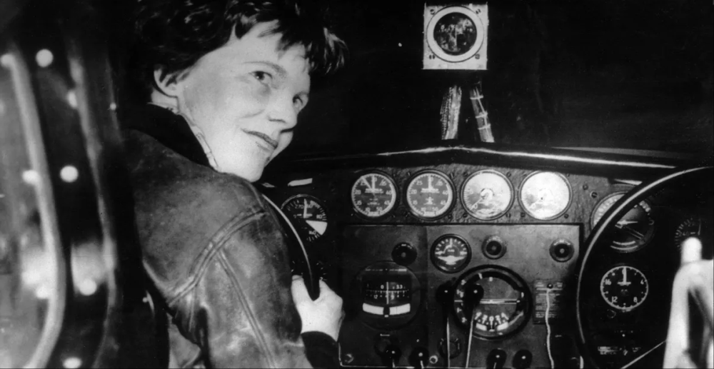 أميليا إيرهارت في عام 1932 أصبحت أول امرأة وثاني شخص على الإطلاق يطير منفردا دون توقف عبر المحيط الأطلسي، وكانت تحاول القيام برحلة حول العالم عندما اختفت.
