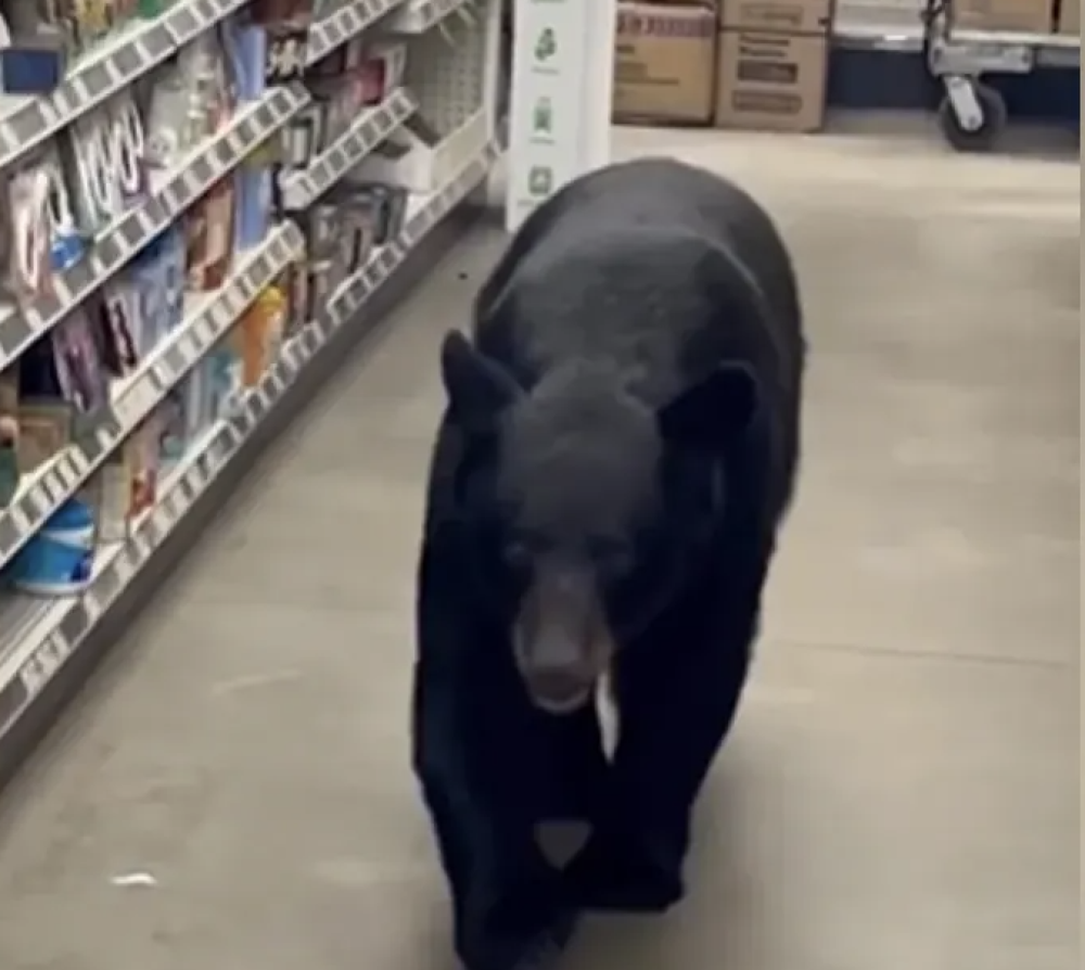 شوهد الدب على مدى ساعات يتجول في مواقف السيارات قرب الطريق السريع، قبل أن يدخل المتجر.