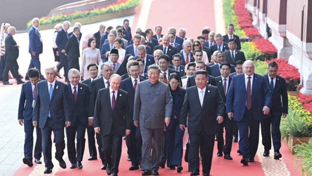 Ahead of the event, Xi and his wife Peng Liyuan greeted world leaders upon their arrival at the venue before walking alongside Putin, Kim and other leaders to the rostrum.